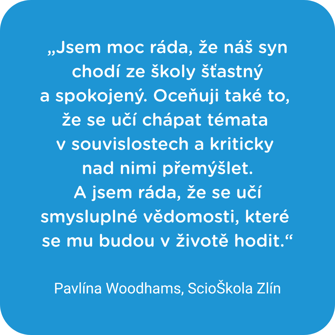 Svět, ve kterém budou dnešní děti žít, bude jiný. Umělá inteligence, rozšířená realita, robotika, autonomní automobily, biotechnologie nebo genové manipulace jim otevřou nové příležitosti, ale také je postaví před nečekané výzvy. Výhodu budou mít ti, kteří jsou zvídaví, umí se učit, rozumí sami sobě i druhým, dovedou spolupracovat, jsou odolní, otevření změnám a mají odvahu vzít budoucnost do vlastních rukou. Přesně takoví by měli být absolventi ScioŠkol.